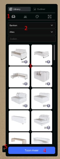 Navigeer gemakkelijk door bibliotheken aan de hand van categorieën of typ direct in de zoekbalk om een object te vinden. -