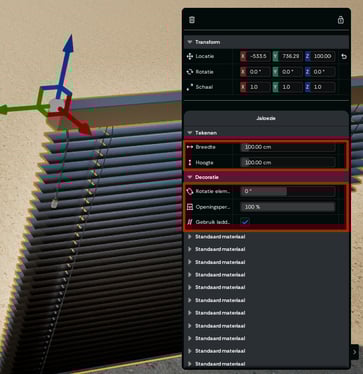 Bepaal of je werkt in Interieur, Exterieur, Materialen of Tekenmodus. -