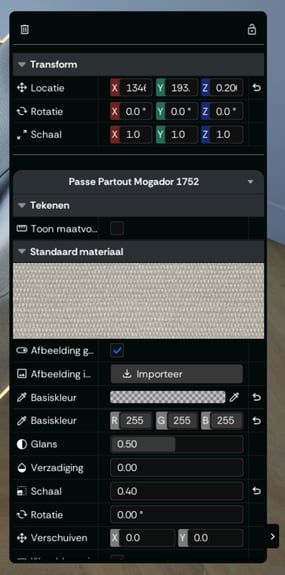 - Materiaal: Als laatste zie je alle materialen staan die op het object zitten. Deze kan je uitvouwen en bewerken.