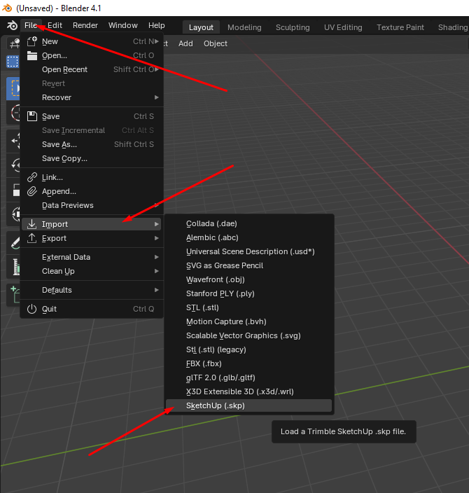 - Vervolg met de onderstaande stappen als je ook SKP (Sketchup) bestanden wilt importeren