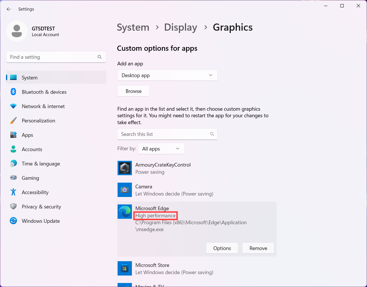 6. De applicatie is nu geconfigureerd om de grafische processor van uw voorkeur te gebruiken.